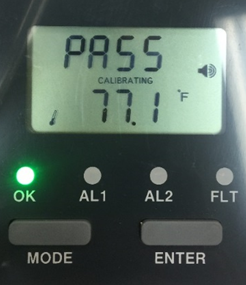 7.Zero calibration will begin. After approximately 5 minutes, the LCD will display either “PASS” or “FAIL”. If the LCD reads “FAIL”, repeat the steps again.