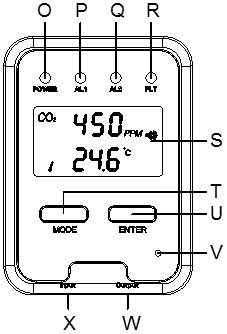 O. Green LED (Power indication) | T. Mode Button |